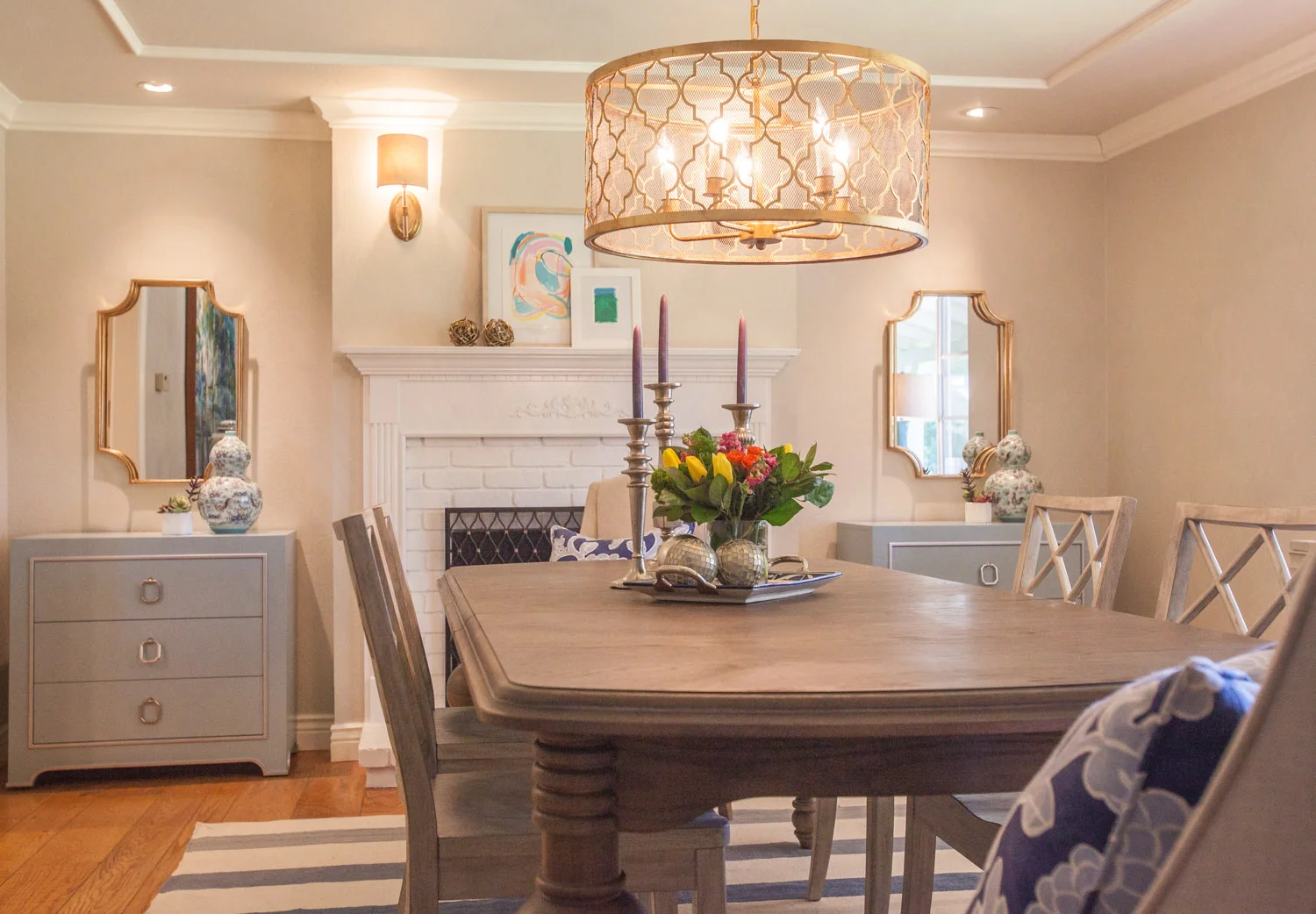 My client lives in a ranch style home, and the 'living room' was basically an unused space where they stored extra furniture. They hired Price Style and Design to create a space that they would use, and that would make them happy. After talking through their needs, we decided to create a dining room out of their living room space - since they already had a large family room that served as their social gathering area. They needed a dining space that was both casual and inviting for guests as well.