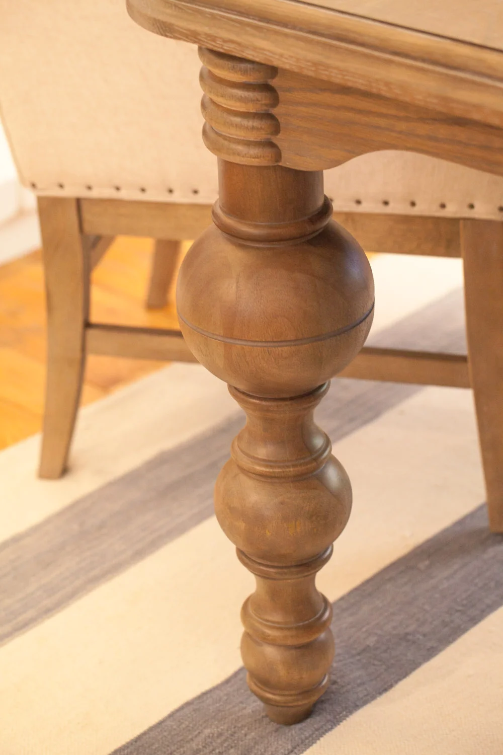 I love the artful details of the dining table legs. The rug is from Serena & Lily.