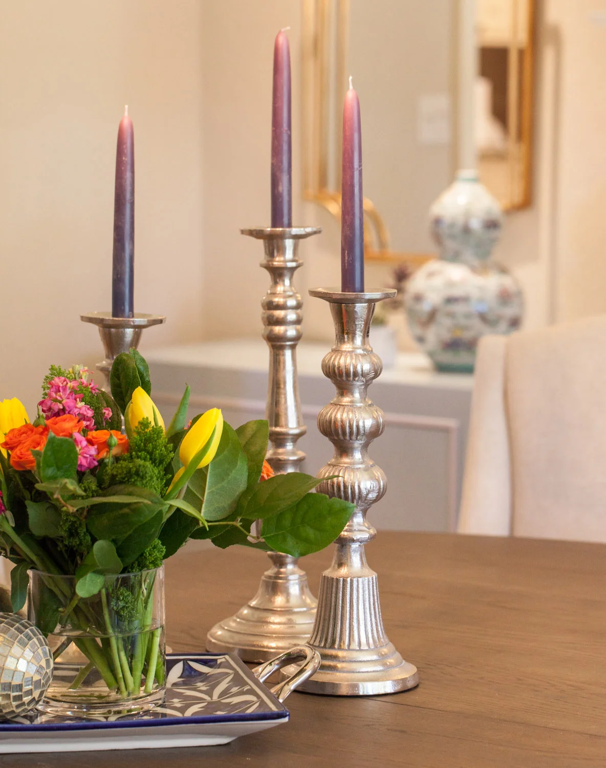 A simply styled centerpiece can remain on your table indefinitely......just add fresh flowers!
