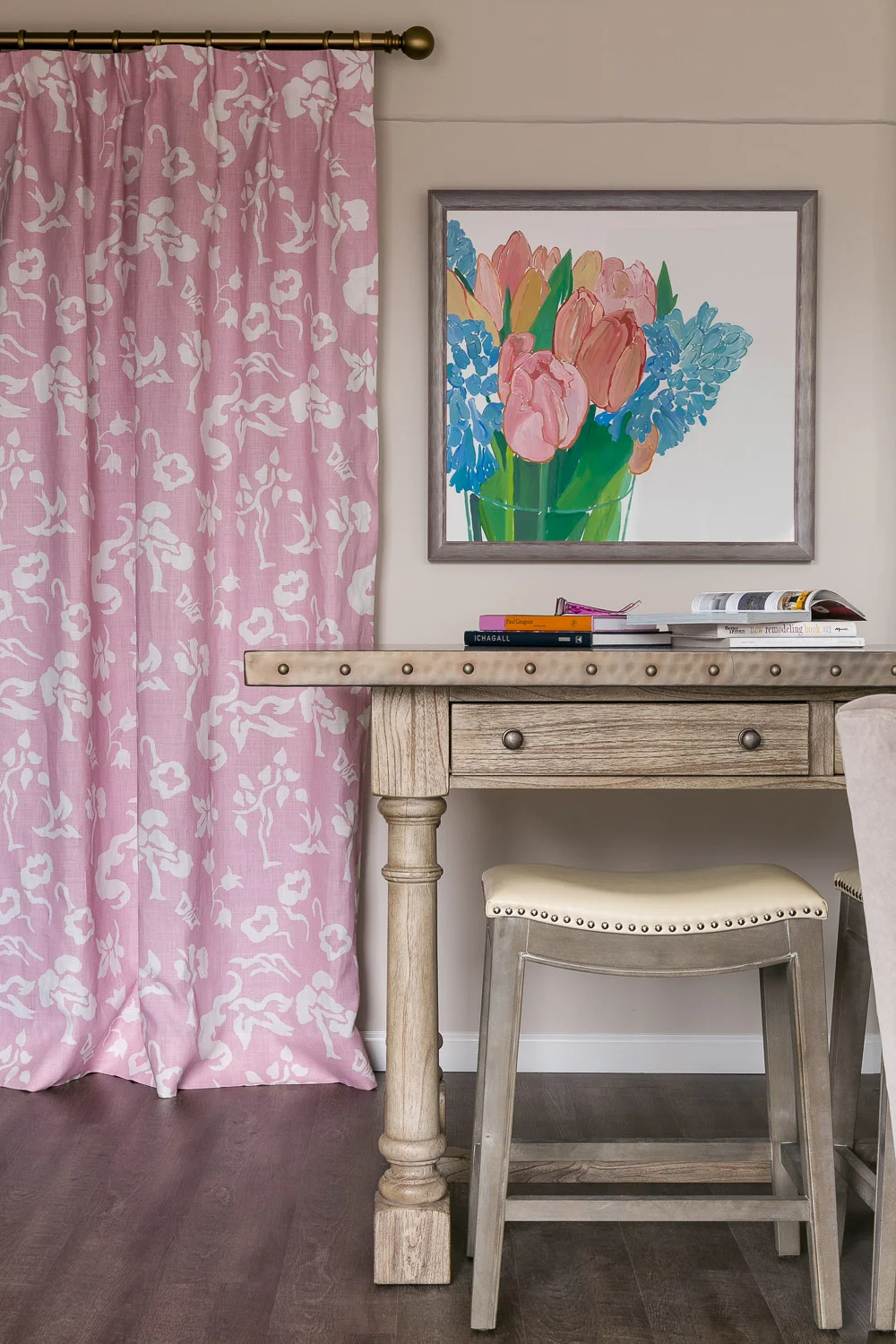 And now, here it is!! The fabric for the draperies is by Victoria Hagan and comes in a few other yummy colors. I love how it looks so spring like!