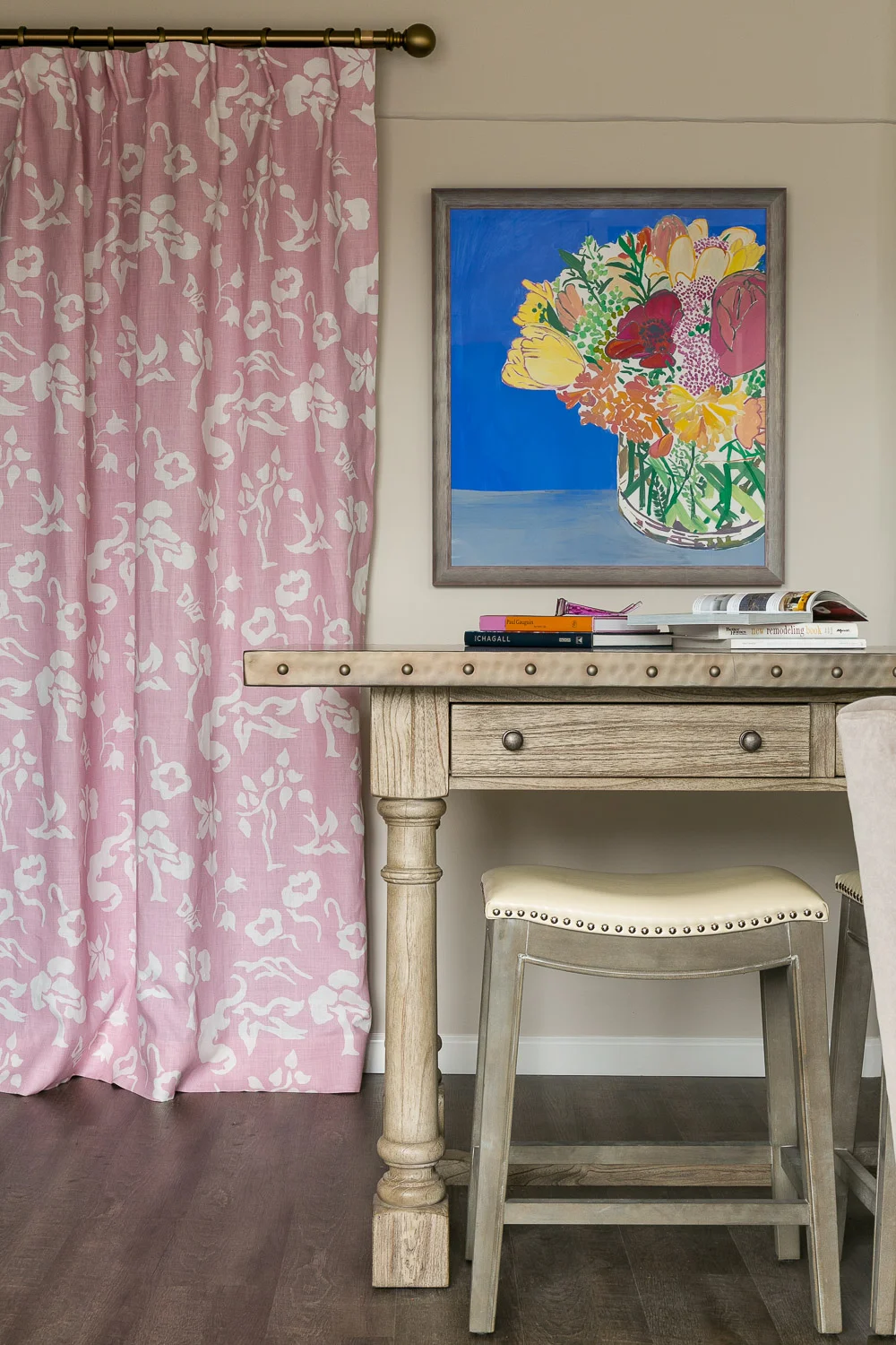 The GORGEOUS art is by Bridgette Thornton. Custom framed and available for purchase in the studio. Here's another photo of the same space with a different piece of art (also by Bridgette Thornton and also available in the studio)....It's amazing how art can define a space isn't it?
