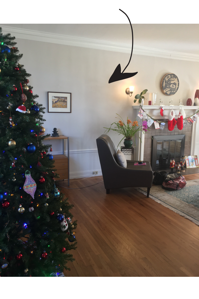 When you first enter the home, the living room is to the left. My client wanted to create a visual ‘wow factor’ along with providing a useful purpose for the space. Here is a ‘before’ photo of the what you first see in the living room (note this was Christmas 2017!)