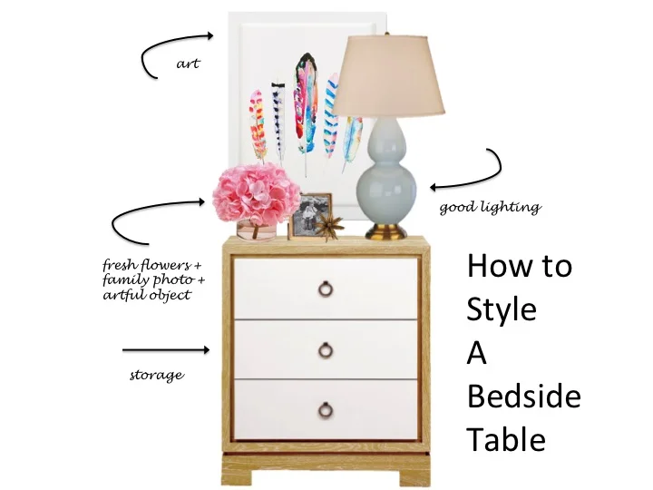 Your bedside table should provide a calming, restful and happy vibe....like a little sanctuary next to your bed.